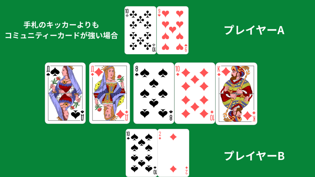 例:手札のキッカーよりもコミュニティーカードが強かった場合