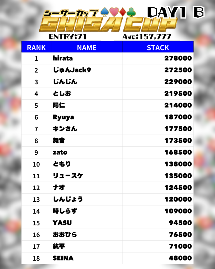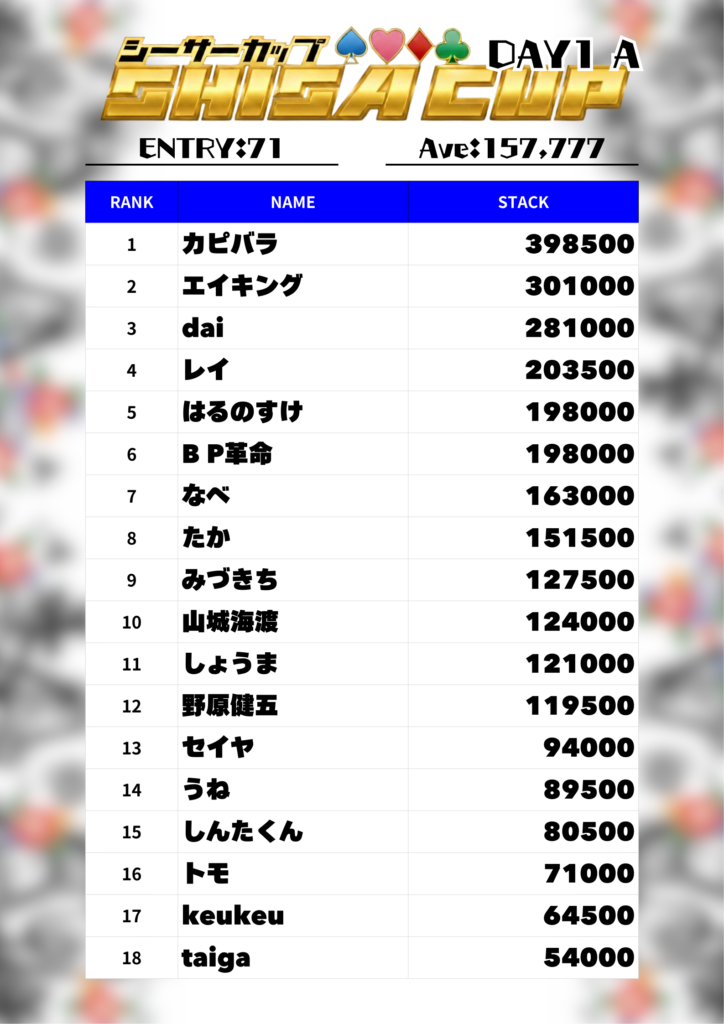 2/20 (金)シーサーカップメイン DAY1 リザルト